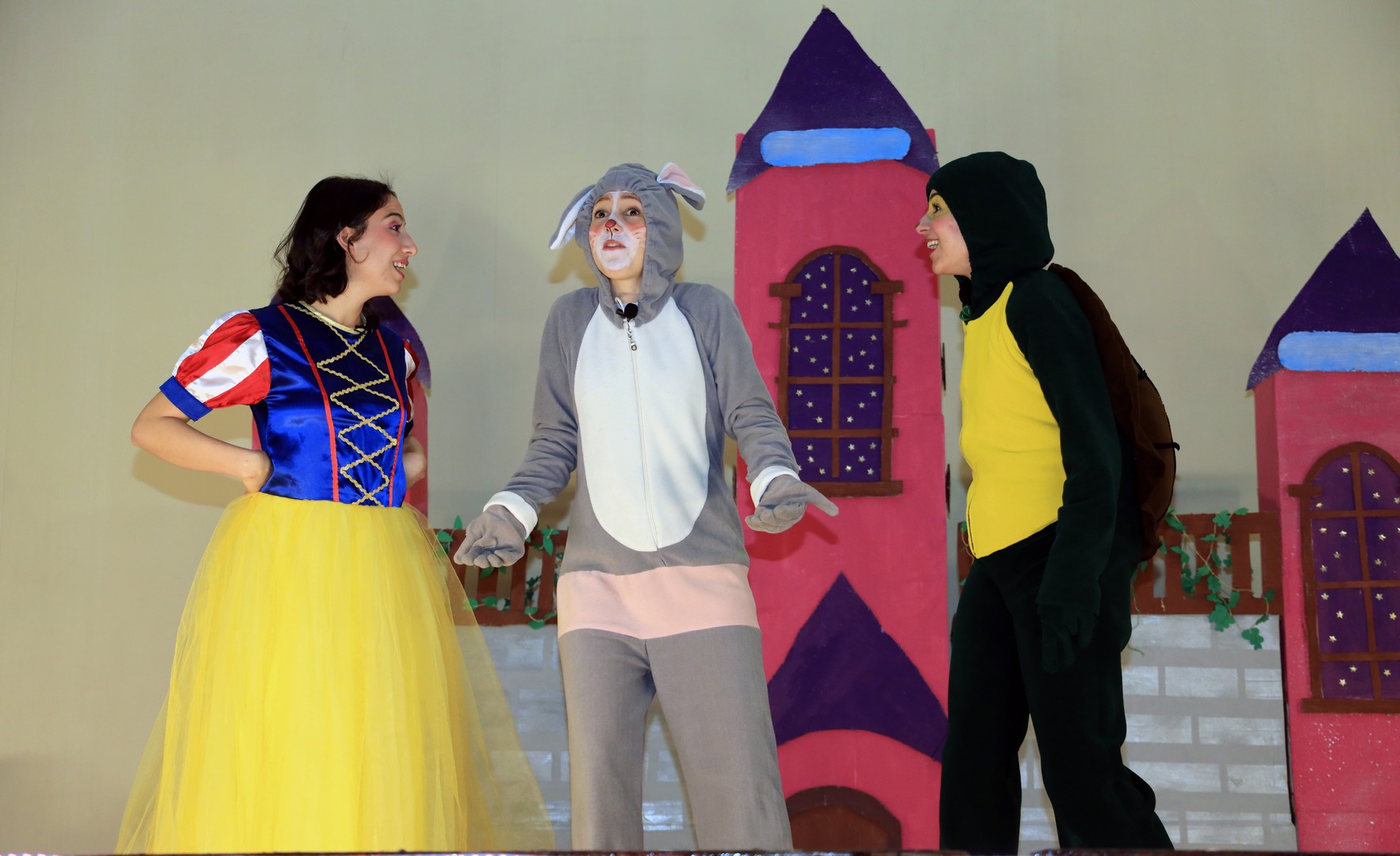 Oyun sonrasında çocuklar prenses, kabuklu, bonbon ve dedektif karakterleri ile birlikte dans ederek fotoğraf çekildiler.