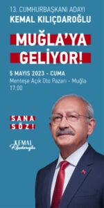 Millet İttifakı Cumhurbaşkanı adayı ve CHP Genel Başkanı Kemal Kılıçdaroğlu, 5 Mayıs Cuma günü saat 17.00’ de Muğla’da miting yapacak.