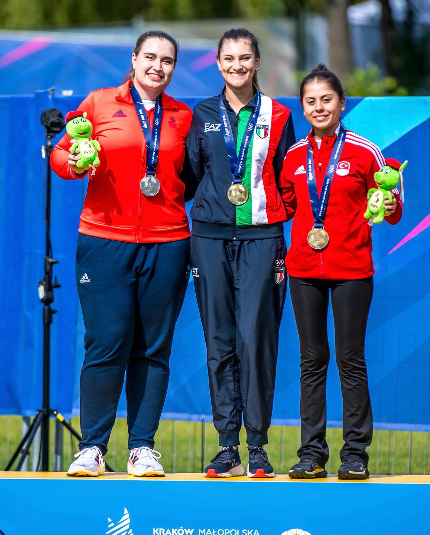 Krakow’daki Plaszowianka Okçuluk Parkı’nda düzenlenen müsabakalarda Muğla Büyükşehir Belediyesi okçularından Hazal Burun, çeyrek finalde Finlandiya’dan Satu Nisula’yı 144-136 yenerek yarı finale yükseldi. Yarı finalde Büyük Britanyalı Ella Gibson’a 148-144 yenilen Hazal, bronz madalya maçında ise Danimarka’dan Tanja Gellenthien’el karşılaştı. Rakibini 146-139 yenen Hazal Burun, bronz madalya elde etti.