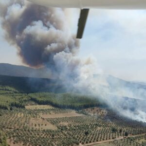 Muğla’nın Milas ilçesinde yol kenarında başlayarak ormanlık alana yönelen orman yangını etkisini sürdürüyor. Milas-Bodrum Havalimanı kavşağında yol kenarında başlayan yangının ilk dakikalarından itibaren Milas Belediye Başkanı Muhammet Tokat bölgeye gelerek incelemelerde bulundu. Milas Belediyesi filosundaki araçların ve arama-kurtarma ekibinin de görev aldığı söndürme çalışmalarına katılan Başkan Tokat, yangın hakkındaki son gelişmeleri kamuoyuyla paylaştı.