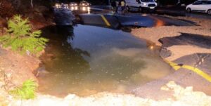 Muğla’nın Bodrum ilçesindeki su an isale hattı Bu kez Geriş Mahallesi Erdemil Caddesi’nin ortasında patladı. Patlama el birlikte asfaltın ortasında iki metre derinliğinde 3 metre genişliğinde çukur açıldı, tonlarca su saatlerce boşa aktı. Bazı ev ve işyerleri çamurlu sularla doldu. Gece yarısı su baskını ile uyananlar evlerini temizledi.