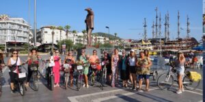 Marmaris’te de gerçekleştirilen Süslü Kadınlar Bisiklet Turu büyük ilgi gördü. Atatürk Meydanı’ndan hareket eden yaklaşık 100 bisikletli kadın şehir turunun ardından yine aynı yere dönerek müzik eşliğinde dans etti.