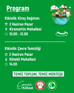 Menteşe Belediyesi’nin Muğla Çevre Geliştirme Derneği ile birlikte gerçekleştirdiği ‘5 Haziran Dünya Çevre Günü’ etkinlikleri başlıyor. Eski kent dokusu içerisindeki Kiramettin Mahallesi’nde geleneksel kireç dağıtımı ile başlayacak olan etkinlikler kapsamında, çevre temizliği ve atık toplama yarışması ödül töreni de düzenlenecek.
