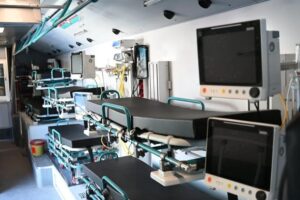 Bu araçta 8 ayrı yoğun bakım yatağı vardır. Ve aynı anda 8 hastanın ayrı ayrı tüm yaşamsal fonksiyonları takip edilerek müdahale edilebilmektedir. Hastanın kalp hızı, EKG’si, tansiyonu, vücut oksijeni, solunum hızı, vücut ısısı ayrıca damar içi basınç takibi yapılabilmektedir.