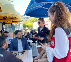 Marmaris Kaymakamı Nurullah Kaya ve Eşi Sümeyra Kaya etkinlik sonrası kadınlara çiçek vererek, şiddete karşı devletin her zaman kadının yanında olduğuna dikkat çektiler. Ata SEVGİ AjansCANKA