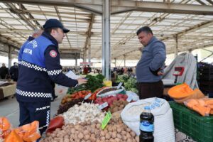 Hafta sonu yapılan denetimlerde ise sosyokültürel alana kurulan pazar yeri kontrol edildi. Zabıta ekipleri, satış yapılan reyonları tek tek gezerek etiket kontrolü gerçekleştirdi. Tezgâhlarında etiketsiz ürün satan pazarcılara uyarıda bulunularak ürünlerin etiketlenmesi sağlandı.