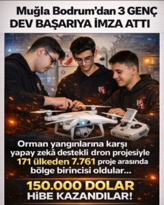 Muğla’nın Bodrum ilçesinde Anadolu Lisesi mezunu Baturhan Öztürk, Hüseyin İçek ve Onur Muhammet Arslan, geliştirdikleri “İnsansız Yangın Tespit ve İlk Müdahale Sistemi (IYTIMS)” ile uluslararası başarıya imza attı.
